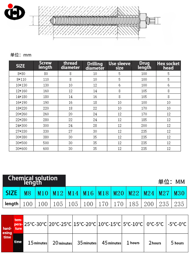 Bolt pengembangan kimia mengamalkan reka bentuk gabungan "hos kimia+skru", yang ditetapkan dengan buburan kimia khas untuk membentuk lapisan ikatan kekuatan tinggi dengan substrat, dan daya berlabuh adalah setanding dengan bahagian tertanam. Ia digunakan secara meluas dalam pembinaan struktur keluli, penetapan peralatan, pemasangan dinding tirai dan adegan lain dengan ciri -ciri galas super, rintangan gempa bumi, rintangan penuaan, pemasangan mudah, dll.