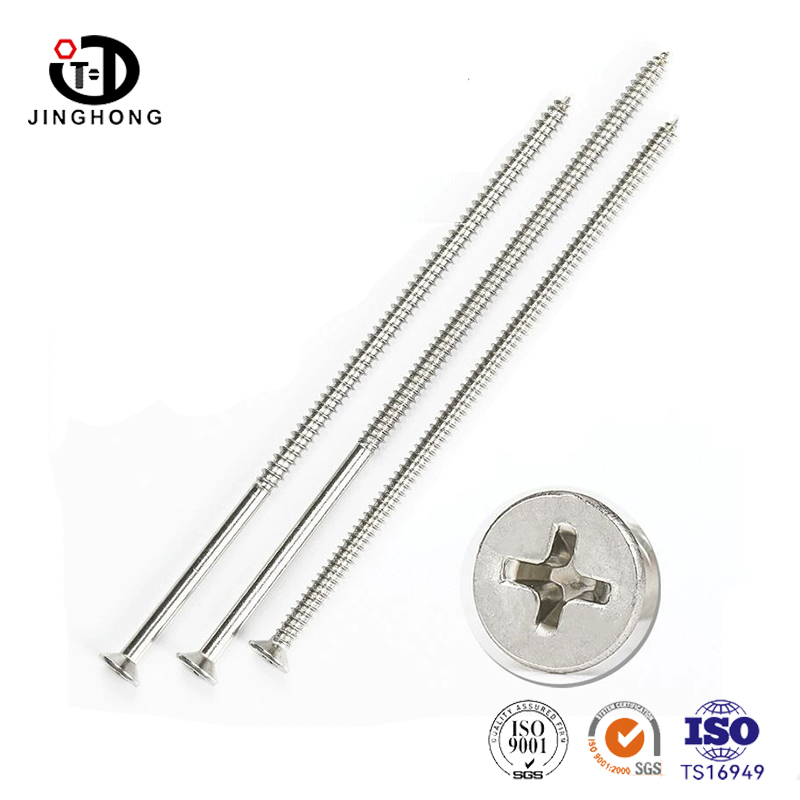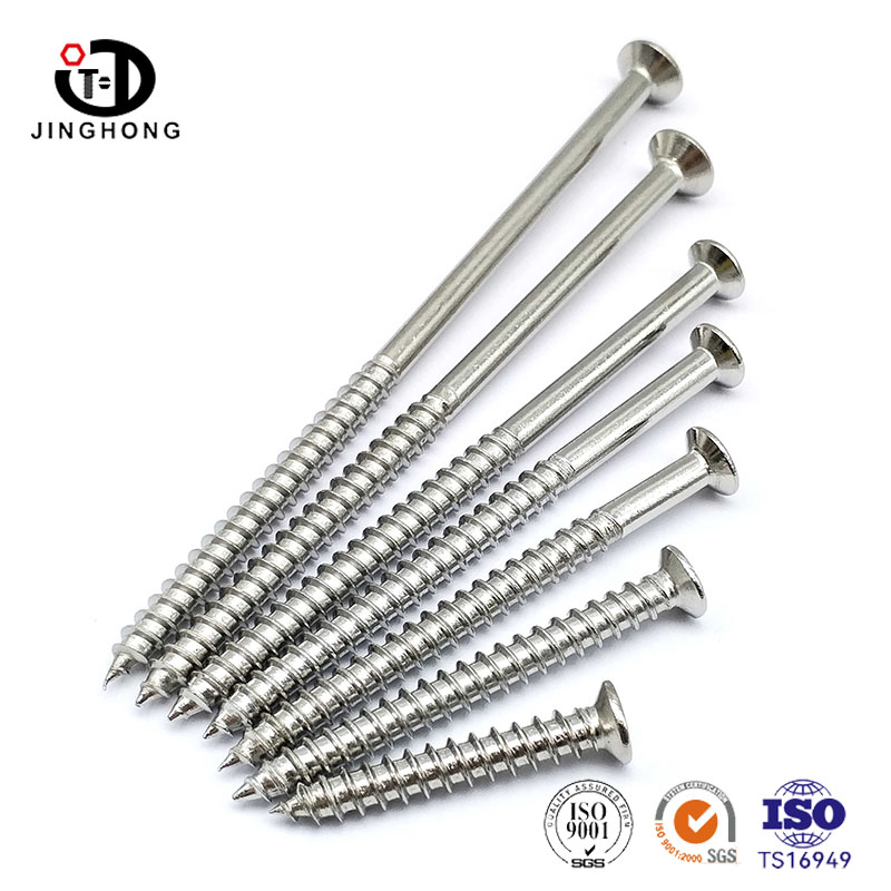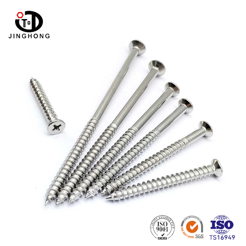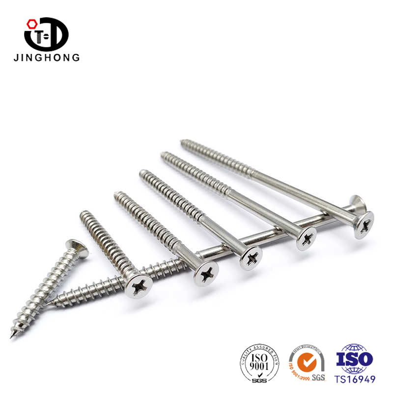 Reka bentuk skru dek keluli tahan karat adalah unik dan cerdik. Kepalanya mengamalkan reka bentuk countersunk, yang disiram dengan atau sedikit lebih rendah daripada permukaan kayu, menjadikan bahagian sambungan lebih rata dan cantik. Reka bentuk ini bukan sahaja meningkatkan estetika produk, tetapi juga mengurangkan bahaya keselamatan yang disebabkan oleh kepala skru yang menonjol. Reka bentuk alur salib membuat pemasangan dan pembongkaran lebih mudah, dan boleh dikendalikan dengan mudah menggunakan pemutar skru silang biasa. Reka bentuk ini bukan sahaja meningkatkan kecekapan kerja tetapi juga mengurangkan kesukaran operasi.
