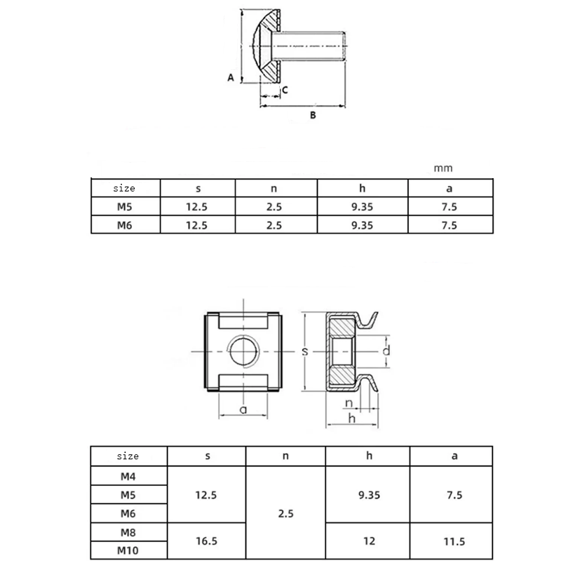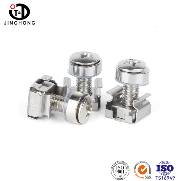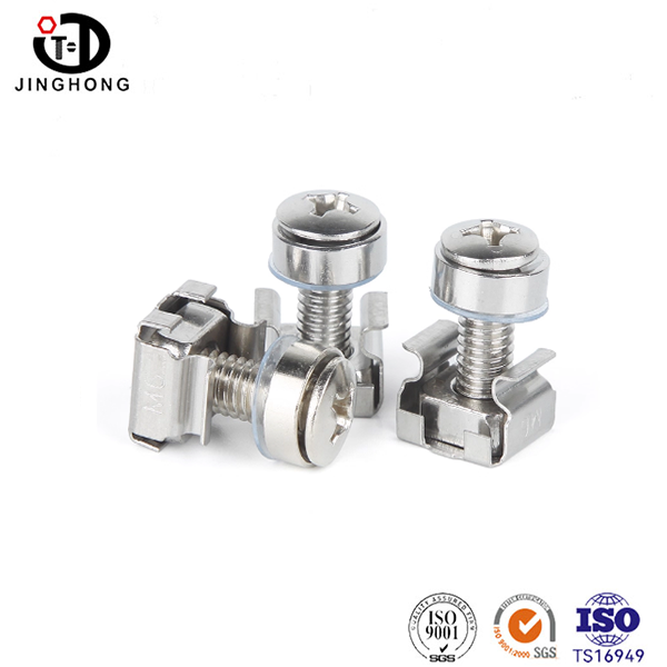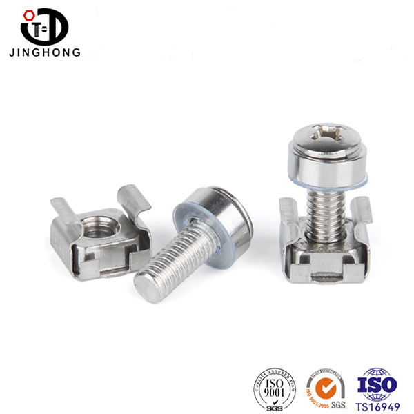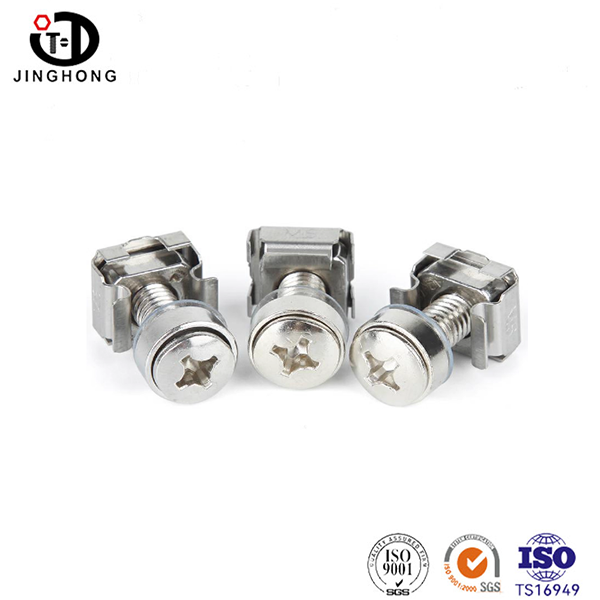 Skru Kepala Mahkota, dengan reka bentuk mahkotanya yang unik, adalah hiasan dan berfungsi, dan sesuai untuk senario terdedah (seperti perabot dan projek hiasan). Nat sangkar dilekatkan pada kedudukan lubang helaian melalui snap-on.