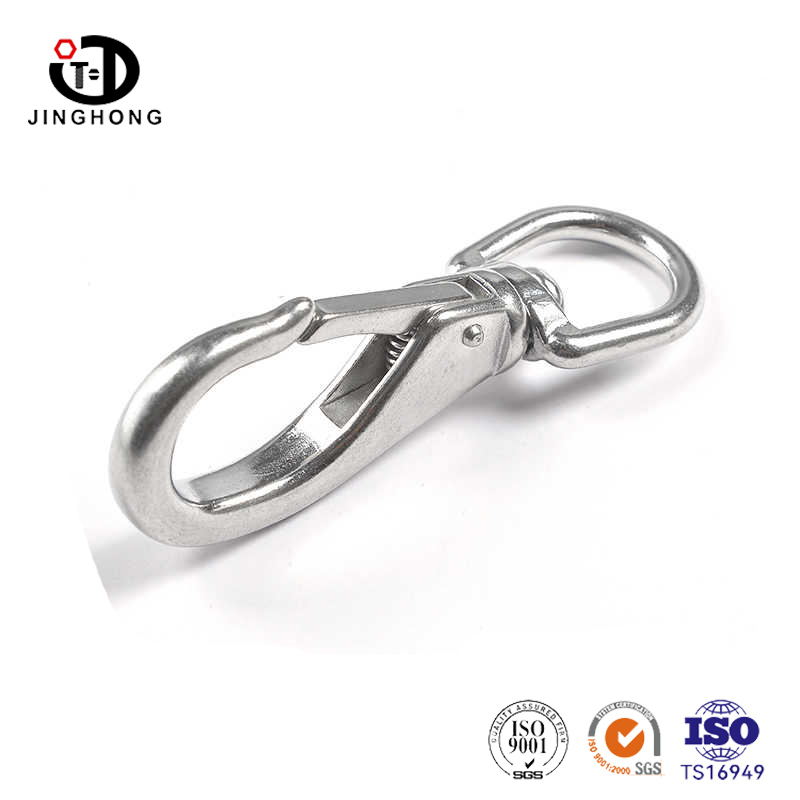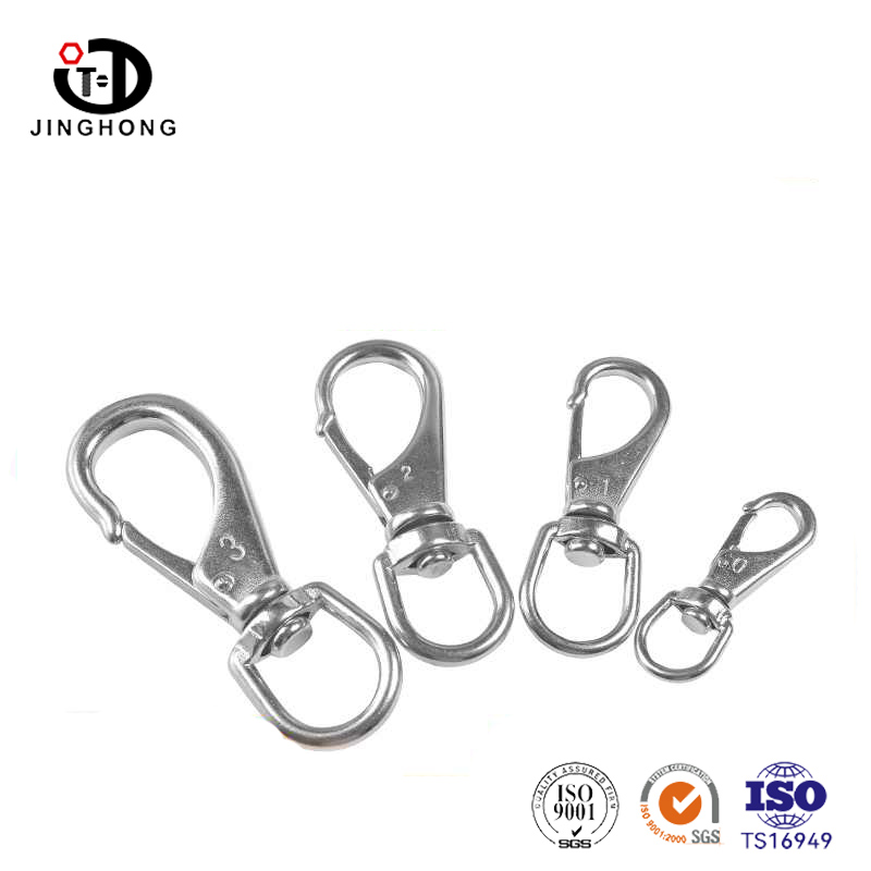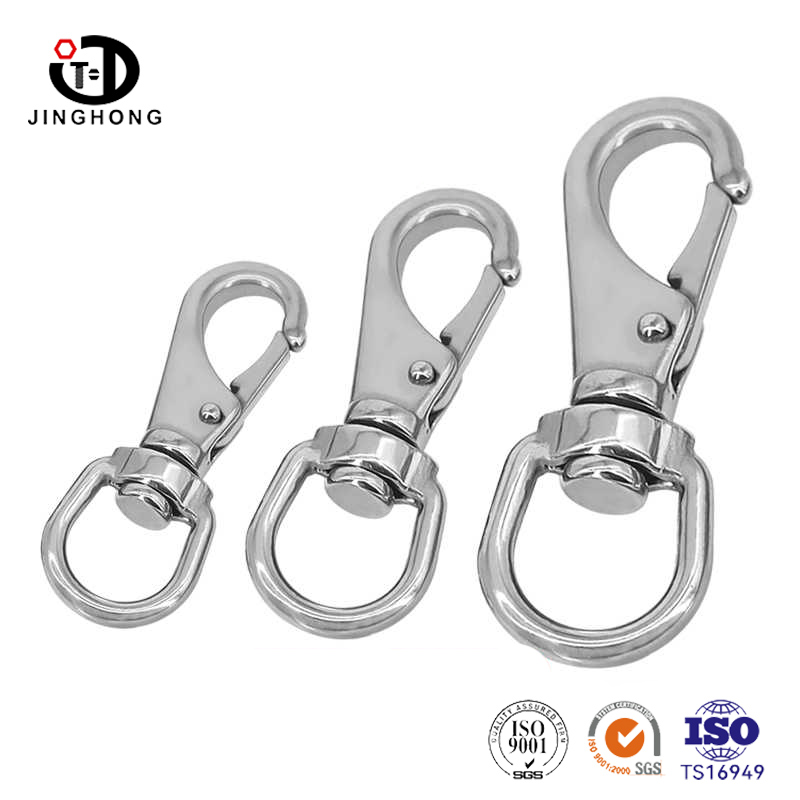 Kemuncak terbesar snap bolt keluli tahan karat adalah reka bentuk universal yang unik, yang membolehkan putaran bebas 360 darjah dan putaran fleksibel dalam pelbagai arah, mudah menyesuaikan diri dengan sudut yang berbeza dan keperluan kedudukan. Ciri ini membolehkan Universal Hook berfungsi dengan baik dalam pelbagai senario. Jinghong sedar bahawa industri dan senario aplikasi yang berbeza mempunyai permintaan yang berbeza -beza untuk sendi sejagat. Oleh itu, kami menawarkan pelbagai spesifikasi dan saiz untuk anda pilih. Kami mempunyai segala-galanya dari cangkuk sejagat kecil dan halus yang sesuai untuk operasi yang baik untuk gesper sejagat yang besar dengan kapasiti galas beban yang kuat yang sesuai untuk mengangkat objek berat yang besar.